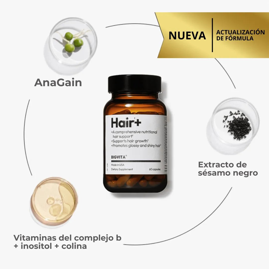 Hair+ está formulado con ingredientes de alta calidad y es seguro para el uso diario. Sin embargo, es recomendable consultar con un médico si tienes alguna condición de salud preexistente o dudas sobre su uso.